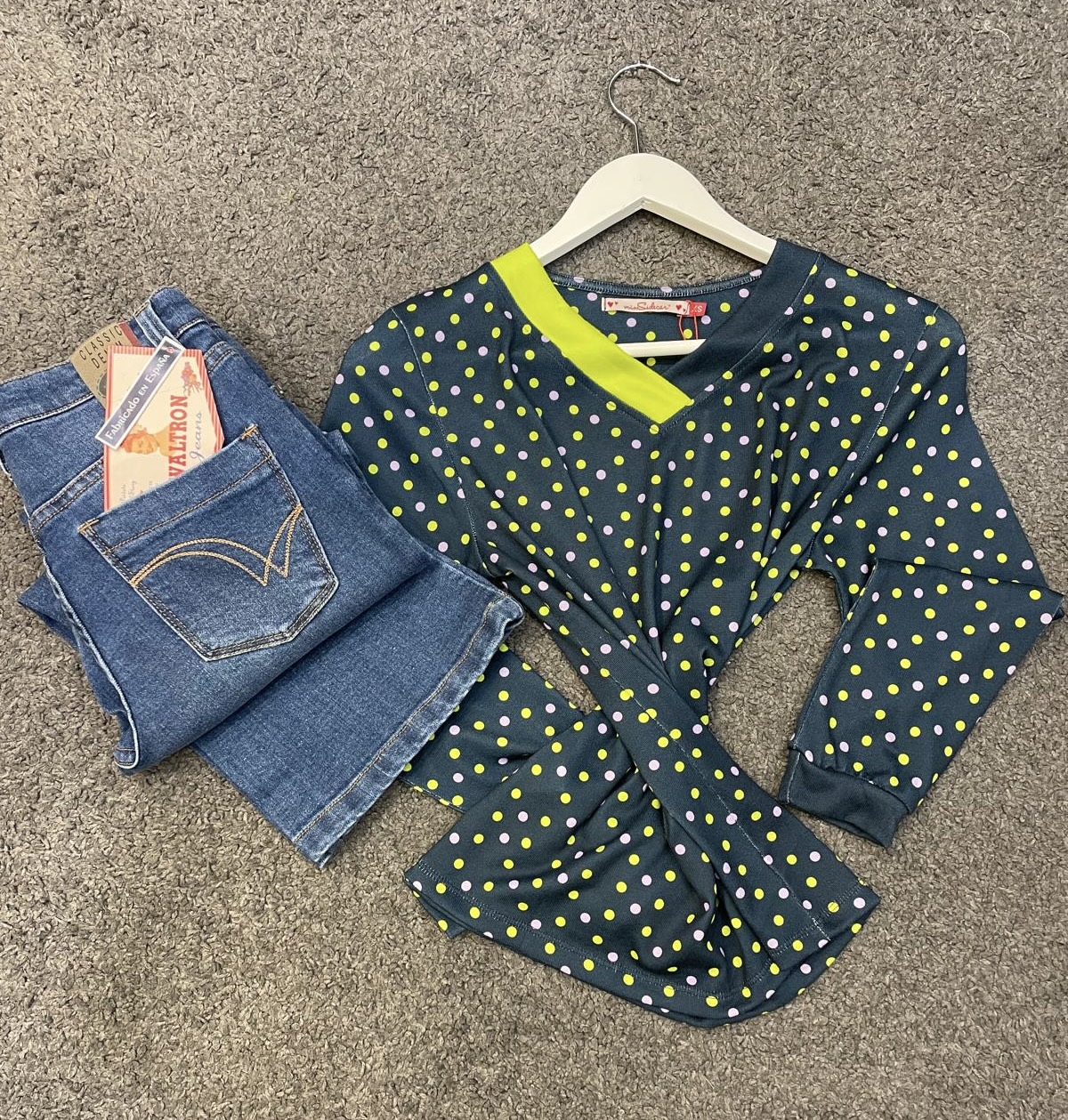 Camiseta con escote en V sutil con el color lima que alarga el cuello, su estampado de lunares multicolor le hace una prenda divertida y sofisticada al mismo tiempo. 97% poliéster 3% elastano ¡Esta no es una camiseta cualquiera…es una prenda que te pone de buen humor!